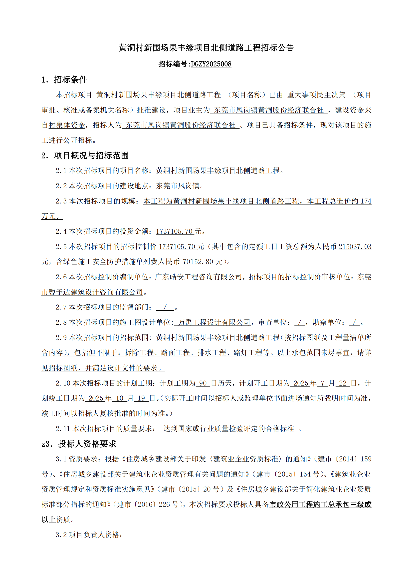 黄洞村新围场果丰缘项目北侧道路工程招标公告