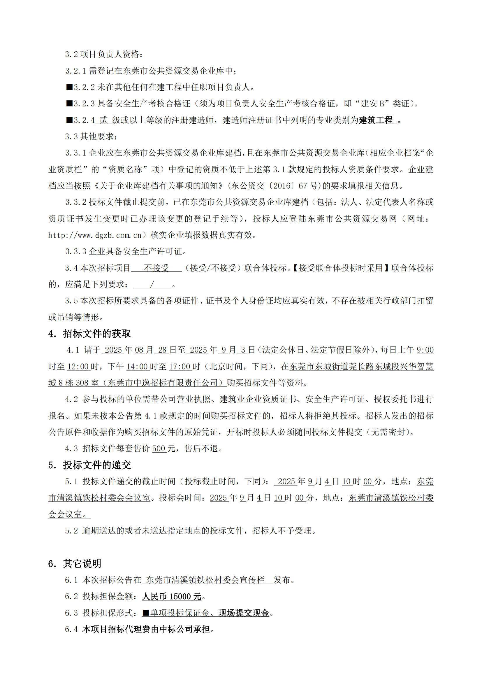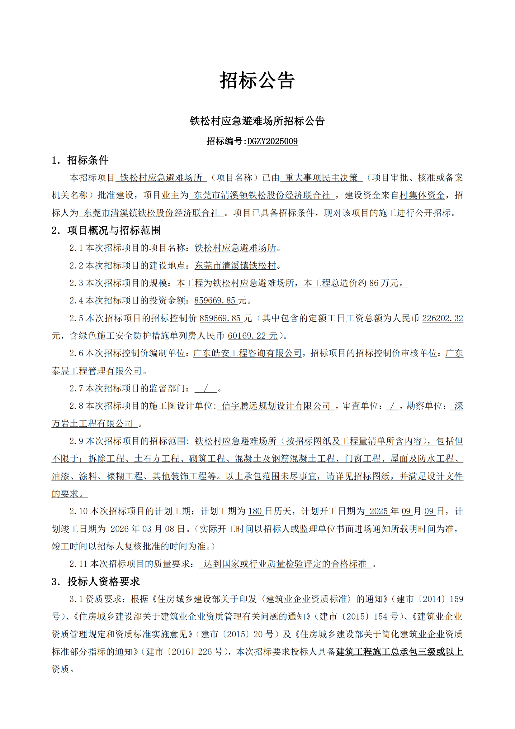 铁松村应急避难场所招标公告