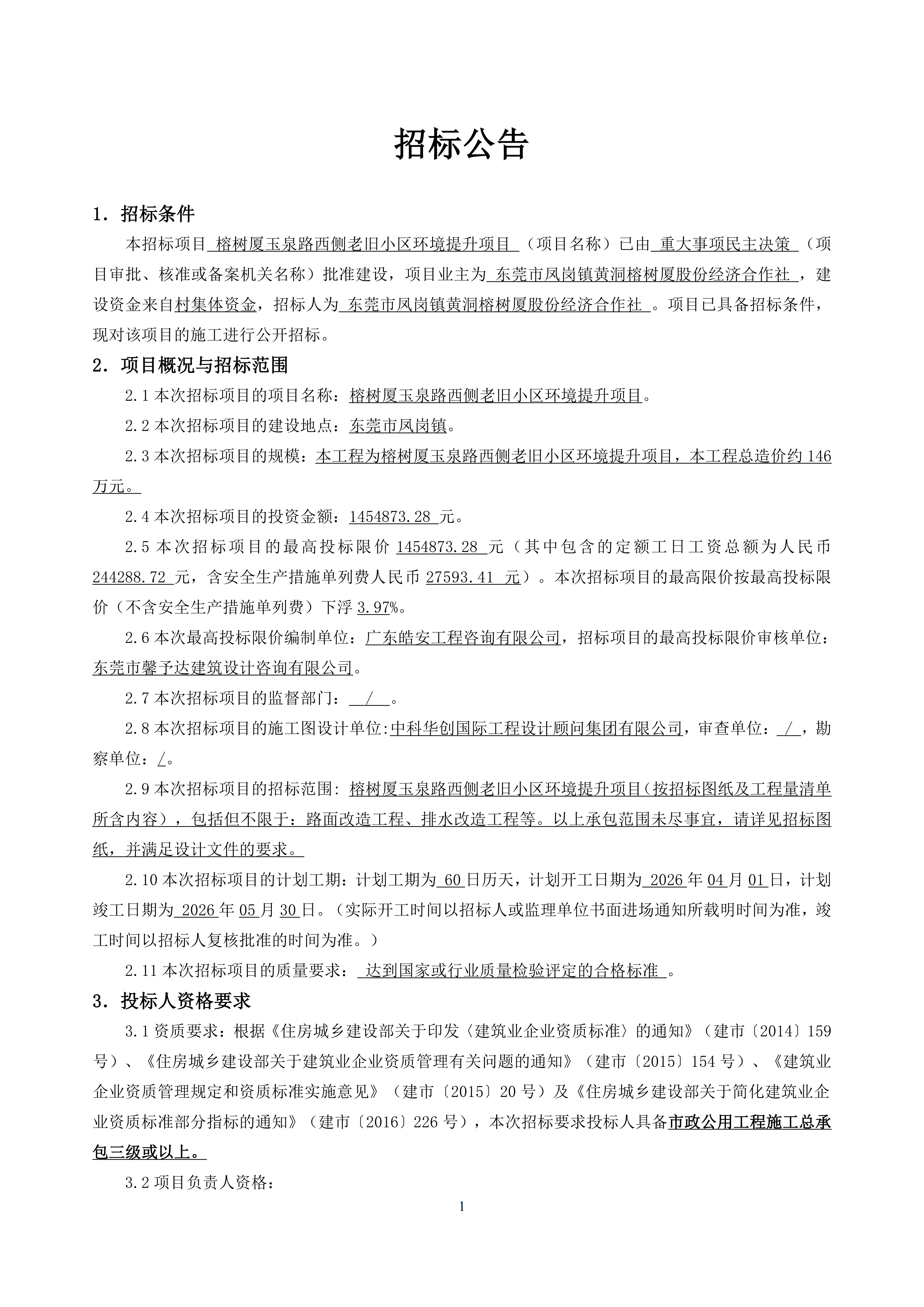 榕树厦玉泉路西侧老旧小区环境提升项目招标公告